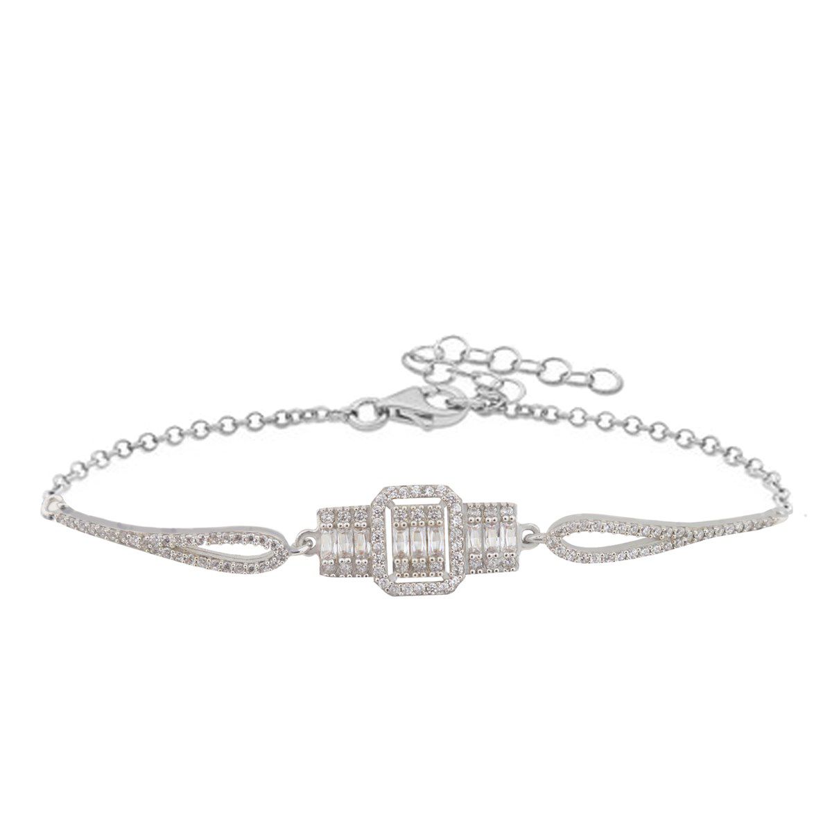 Bileklik, minimalist ama bir o kadar da etkileyici bir tasarıma sahiptir. Baget kesim taşlar, bilekliğin sadeliğine dikkat çekici bir hava katmaktadır. Işıltılı taşlar, gün ışığında ve özel etkinliklerde bileğinizi süslerken, her açıdan farklı bir parıltı sunar.