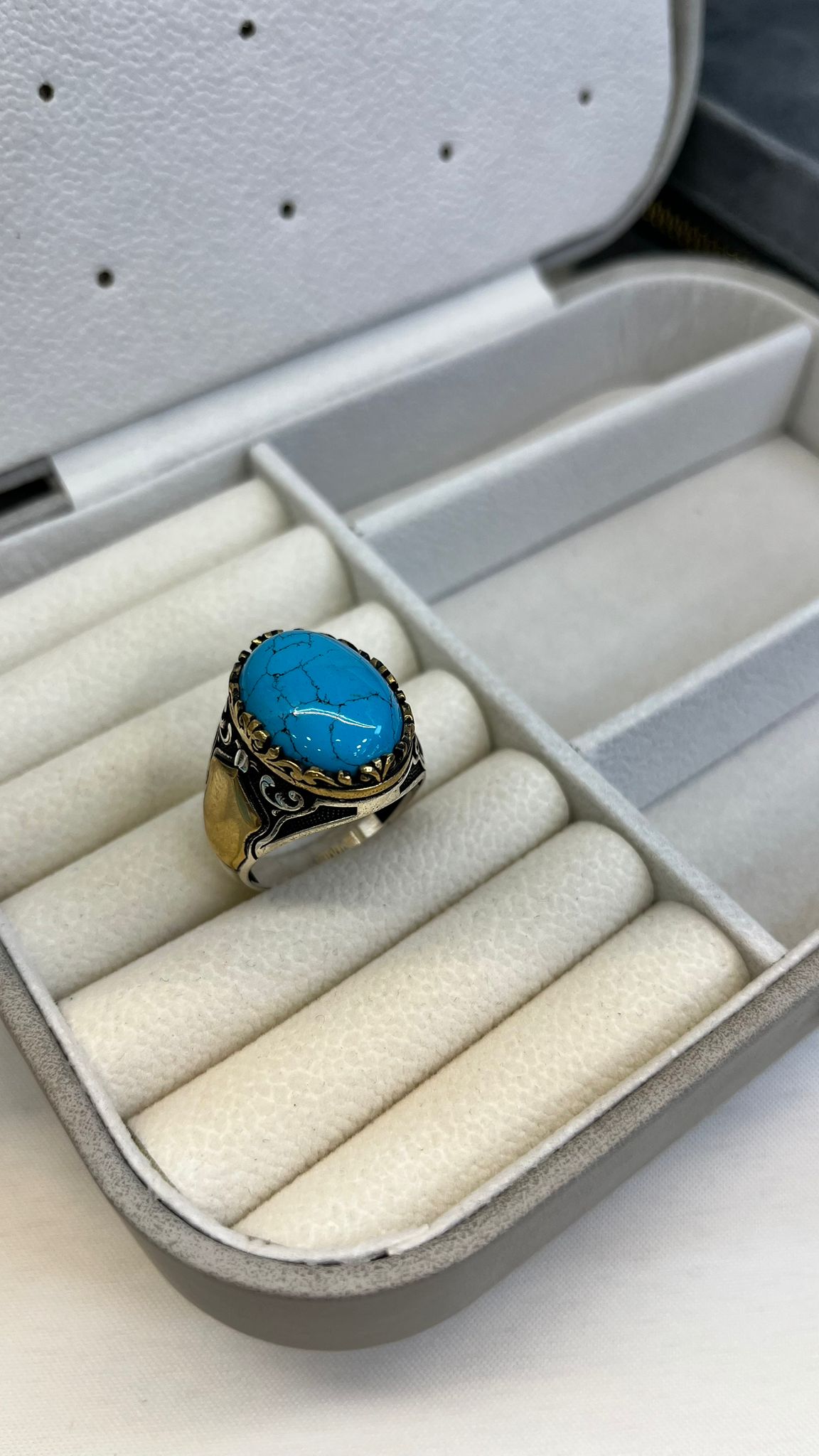 925 ayar gümüş firuze taşlı yüzüğe sahip olmak için hemen sipariş verin! Ürünlerimiz hakkında daha fazla bilgi almak veya özel sipariş taleplerinizi iletmek için bizimle iletişime geçebilirsiniz. Siz de bu eşsiz parçada yerinizi alın ve zamansız bir şıklıkla tarzınızı tamamlayın!